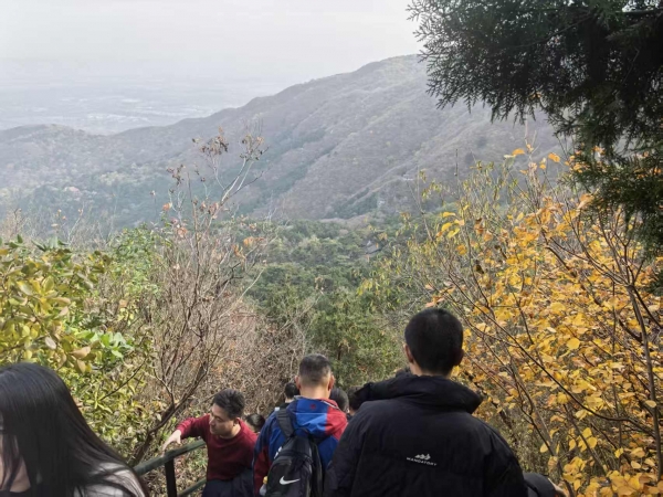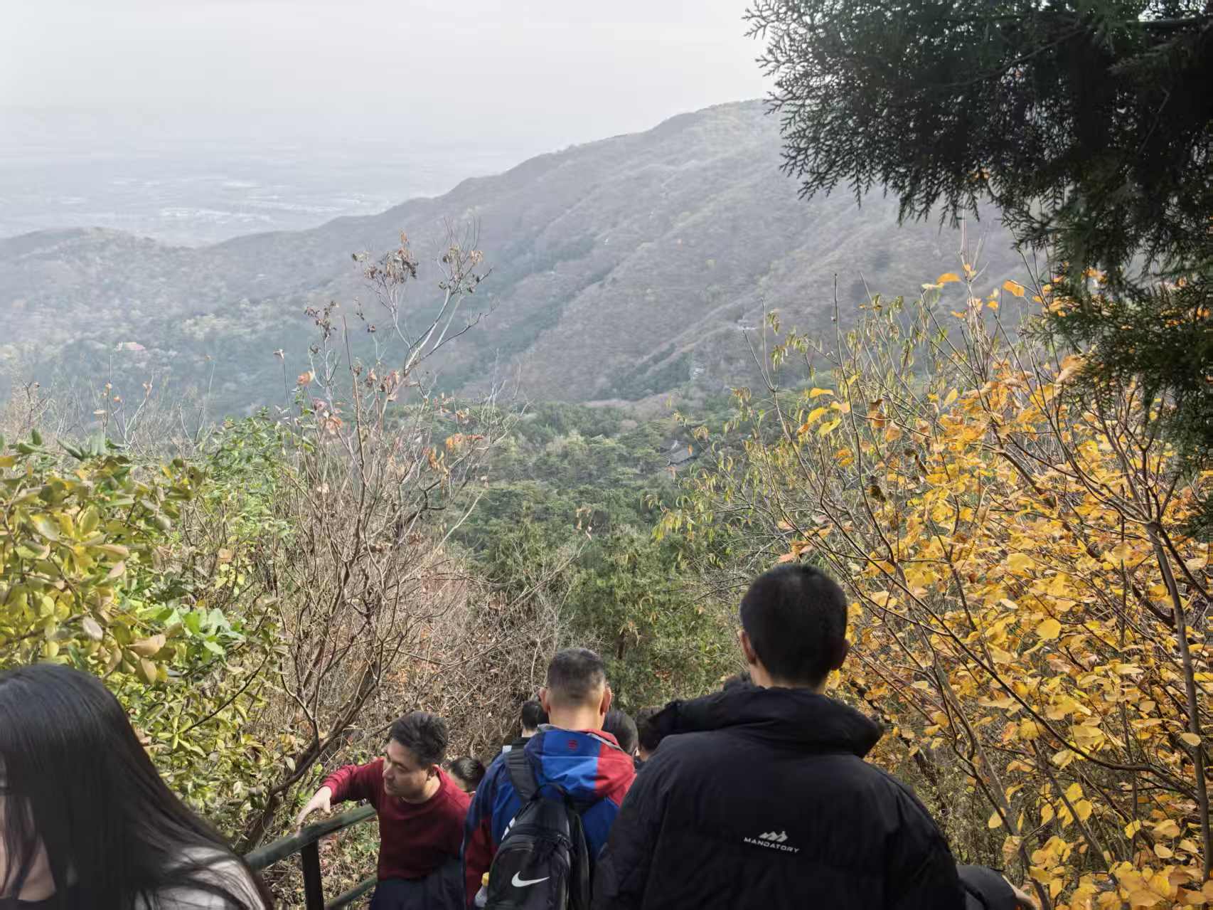 午后,同学们自由组队登山。山径蜿蜒,科研探讨与红叶赞叹交织,大家在相互鼓励中拾阶而上,展现出良好的团队精神。登顶香炉峰后,同学们围绕“科研攀登精神”与“新时代青年使命”展开交流,结合参观与登山体验,从专业角度探讨如何将红色精神转化为科研动力。
