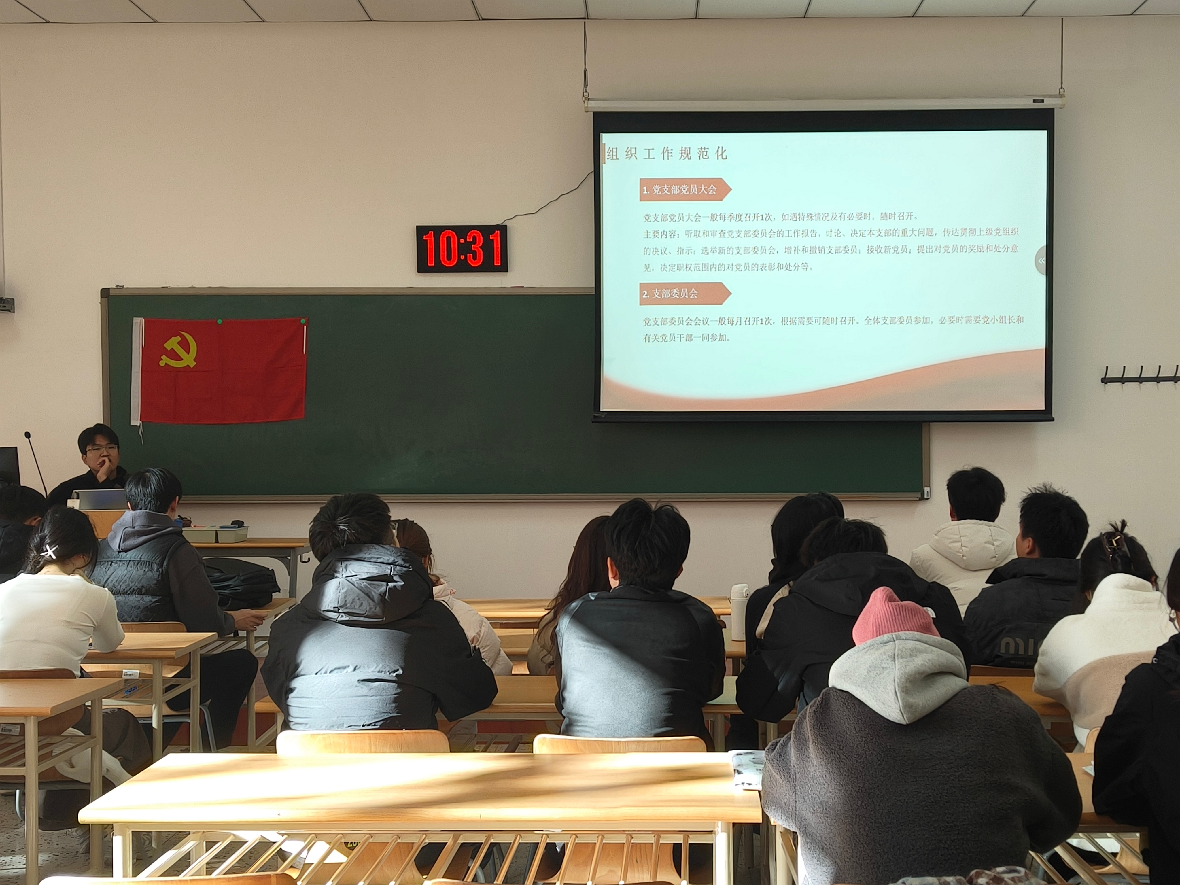 会议首先围绕“组织工作规范化”展开,系统梳理了支部“三会一课”、组织生活会等制度执行要求。会议强调,要严格落实党支部党员大会每季度一次、党小组会每月一至两次、党课每学期至少一次的制度安排,确保组织生活严肃规范、内容充实、取得实效。支部下设五个党小组,会议进一步明确党小组长职责,要切实发挥党小组在理论学习、思想交流和工作汇报中的基础性作用。