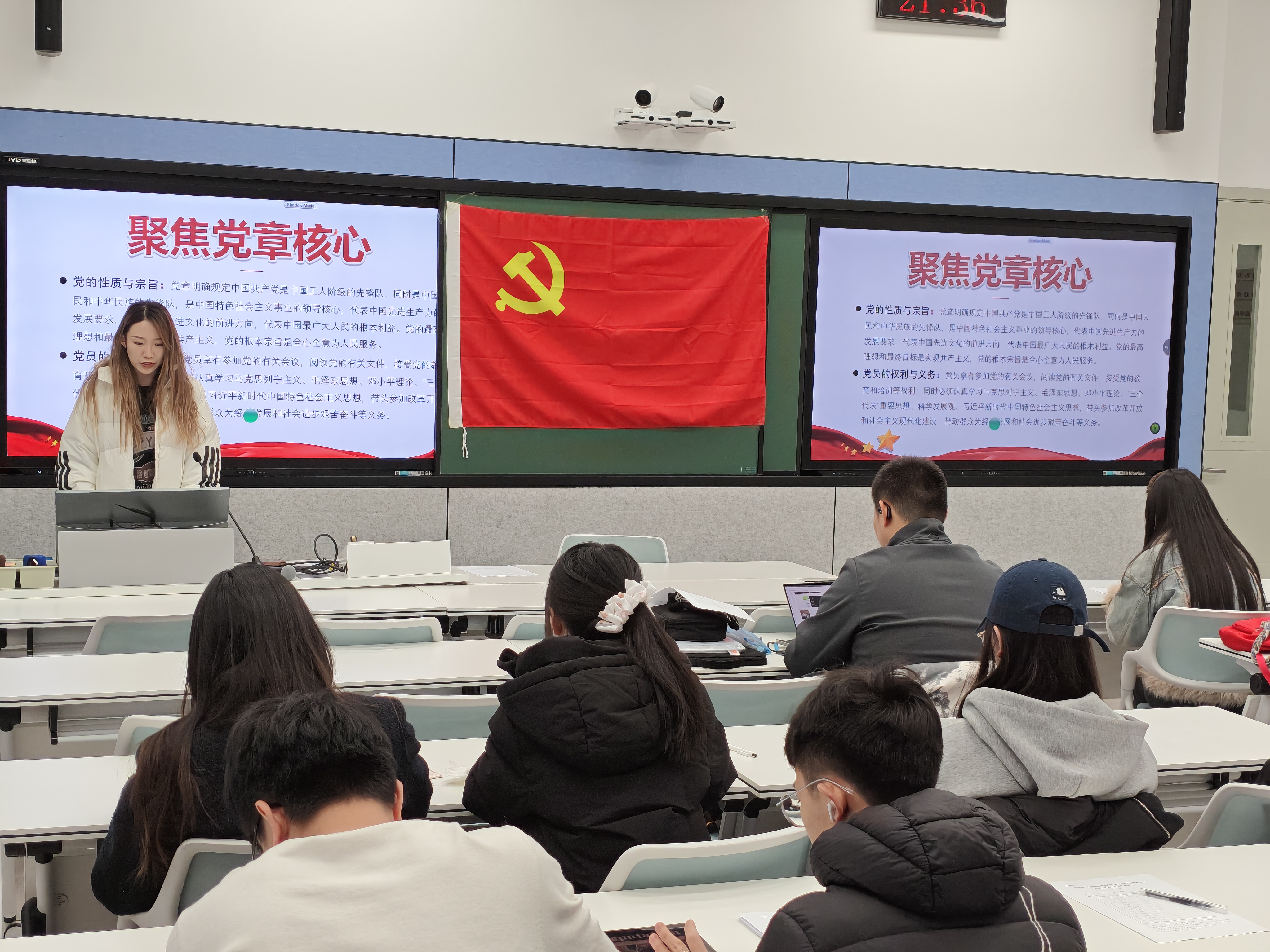 为持续强化党员理论武装,坚定理想信念,2024年12月23日晚,化工学院20252106党支部举行了以“筑牢信仰根基,砥砺前行之路”为主题的专题党课学习活动。本次党课由党支部书记弓哲芊同志主讲,围绕入党誓词、中国共产党章程、抗战精神、中华民族共同体意识、二十届四中全会等核心内容展开系统学习与深入研讨。