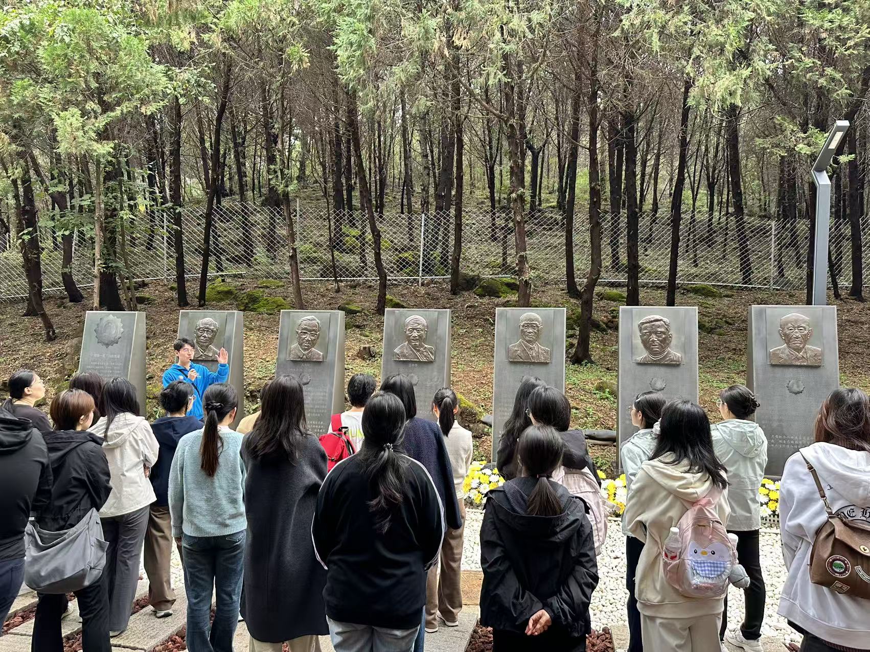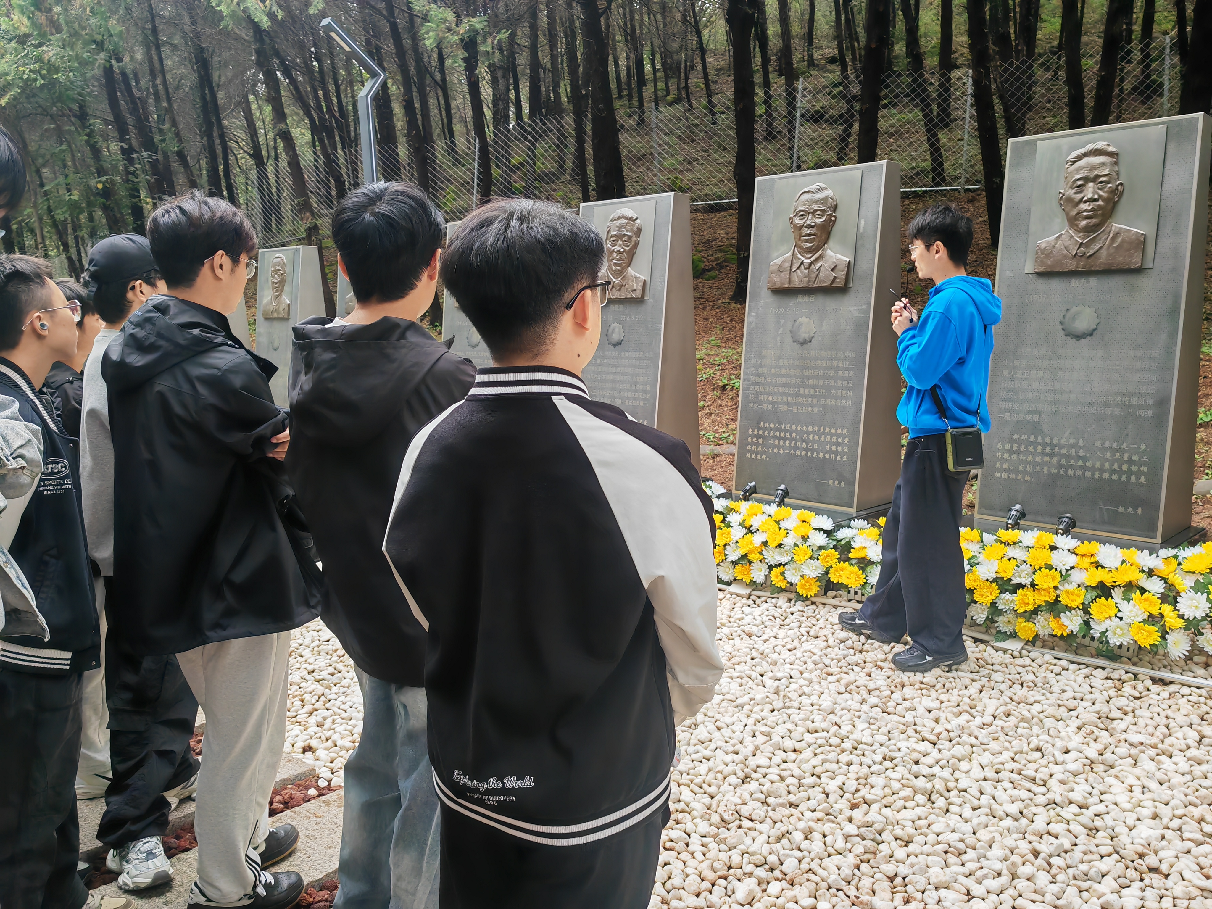 同学们依次参观了周光召先生纪念厅、中国科学院“两弹一星”历史人物展以及中国科学院与“两弹一星”事业展。怀柔基地,这个曾经对外代号为“北京矿冶学校”的保密科研重地,是新中国火箭事业的重要摇篮。在这里,科研人员们白手起家,自力更生,于1964年成功进行了我国首次液氢液氧火箭发动机的地面试验,书写了多个中国第一的科技历史。