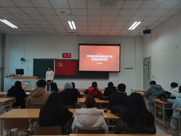 为深切缅怀老一辈无产阶级革命家的丰功伟绩和崇高精神,持续巩固拓展主题教育成果,进一步加强党员党性修养,坚定理想信念,化工学院20252101党支部于2025年12月29日在教二-121召开了“学习陈云同志崇高风范,传承党的优良传统”为主题的专题党课。深入学习贯彻习近平总书记在纪念陈云同志诞辰120周年座谈会上的重要讲话精神,支部全体党员参加了学习,并展开了热烈而深入的研讨交流。